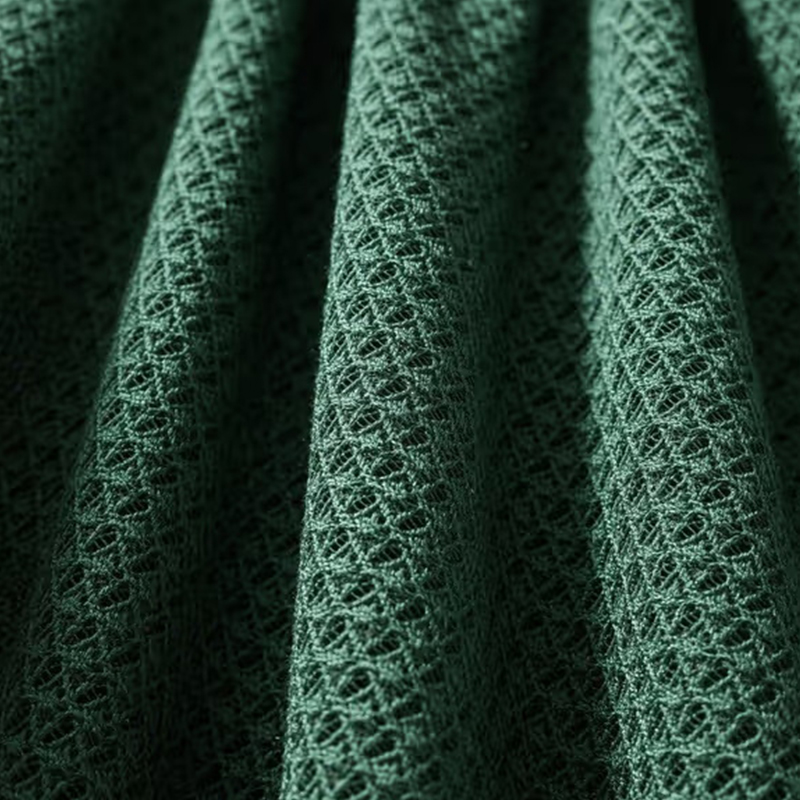 Vải mắt chim đan xen polyester co giãn là loại vải được thiết kế để đáp ứng nhu cầu thể thao, quần áo mùa hè, thiết bị ngoài trời và trang phục thường ngày. Sử dụng quy trình dệt đan xen độc đáo, loại vải này duy trì đặc tính thoáng khí và hút ẩm của vải mắt chim truyền thống đồng thời tăng cường độ bền và độ bền của vải. Bề mặt của nó bao gồm các lỗ nhỏ, không chỉ tạo thêm hiệu ứng hình ảnh độc đáo cho vải mà còn cải thiện khả năng thoáng khí, giúp mồ hôi thoát ra nhanh chóng, giữ cho người mặc khô ráo và thoải mái. Cho dù đó là mức tiêu thụ cường độ cao khi chơi thể thao hay mặc hàng ngày trong thời tiết nóng bức, nó có thể mang lại sự thoải mái cả ngày.